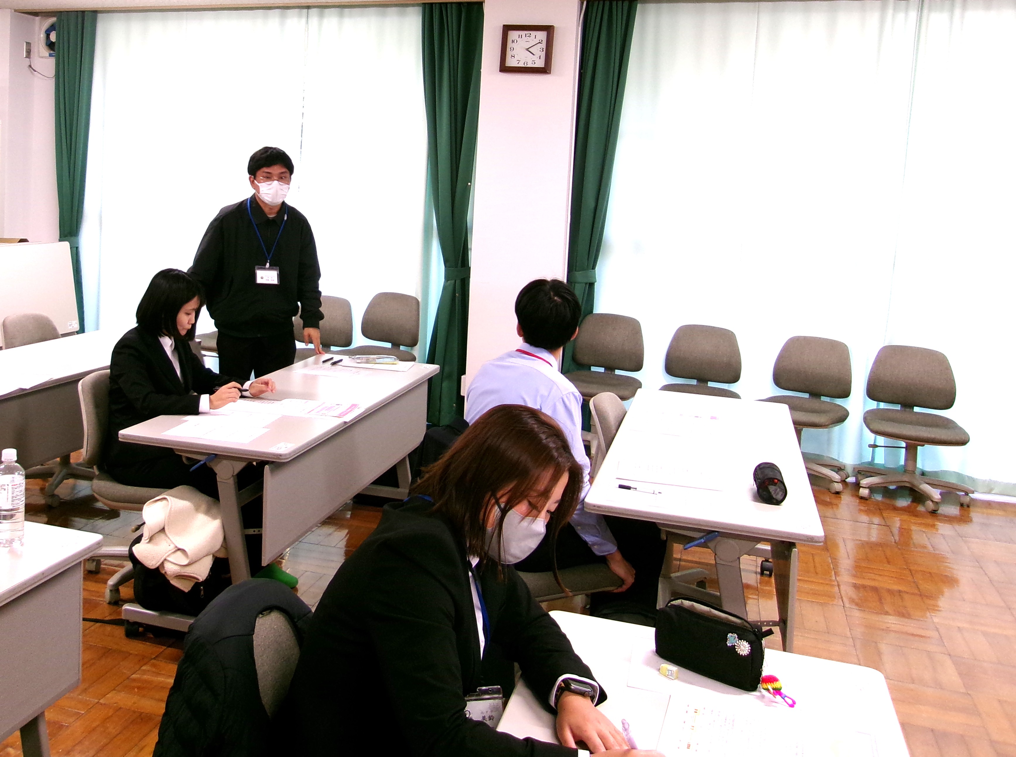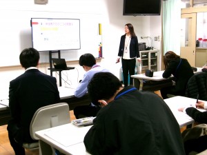 後半は、「保護者対応」について、東指導主事が担当しました。「予防的」・「対処的」側面の両方について確認しました。。社会人としてのマナーや話を聞く時のポイントについて、ペアで共有しながら考えることができました。